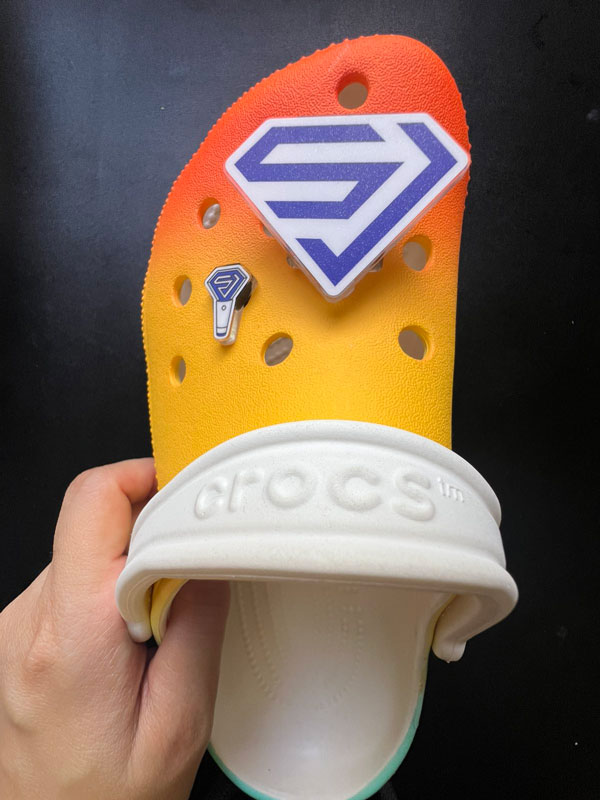 This is the actual photo of the product. Items on this photo are SUJU LOGO 1.3-1.5 inch angel lights jibbitz (LED mech not visible) and SUJU LS 0.7 inch ordinary jibbitz.