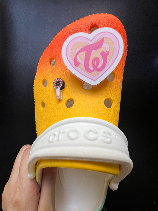 This is the actual photo of the product. Items on this photo are TWICE HEART 1.3-1.5 inch angel lights jibbitz (LED mech not visible) and Twice LS 0.7 inch ordinary jibbitz.